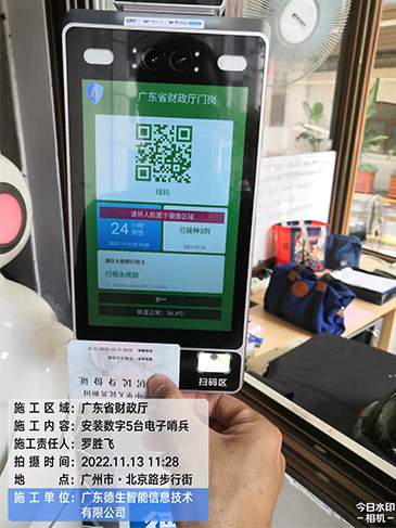 德生数字哨兵,在广东财政大厅中,不仅协助工作人员对外部人员的身份与健康码核验对内部人员的健康也丝毫不马虎,但核验的同时,还保障了所有办事人员的通行效率,贯彻落实广州政府动态清零的防疫正常。