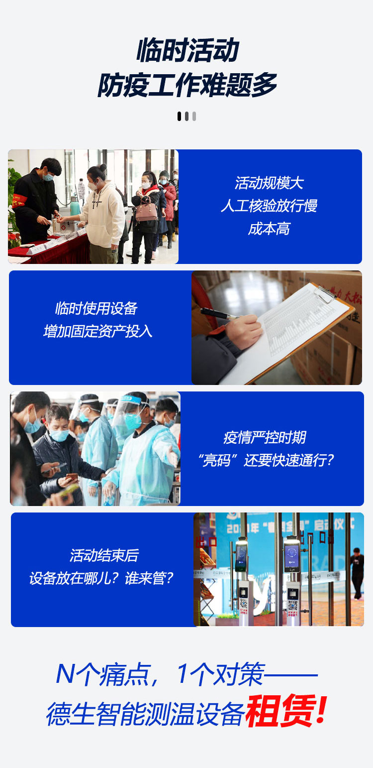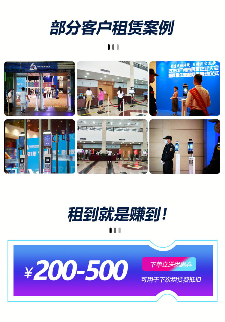 红外热成像/人脸识别测温设备无忧租赁,多种套餐选择,支持多人同时测温,人脸识别测温,数据平台管理等,按年/按月/按日,多种租赁方式,使用成本更低,广泛应用于会议、展览、年会、酒店等!