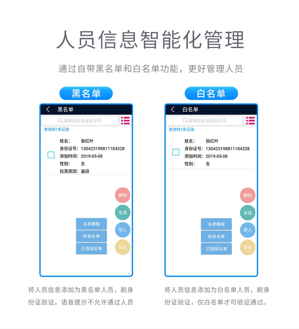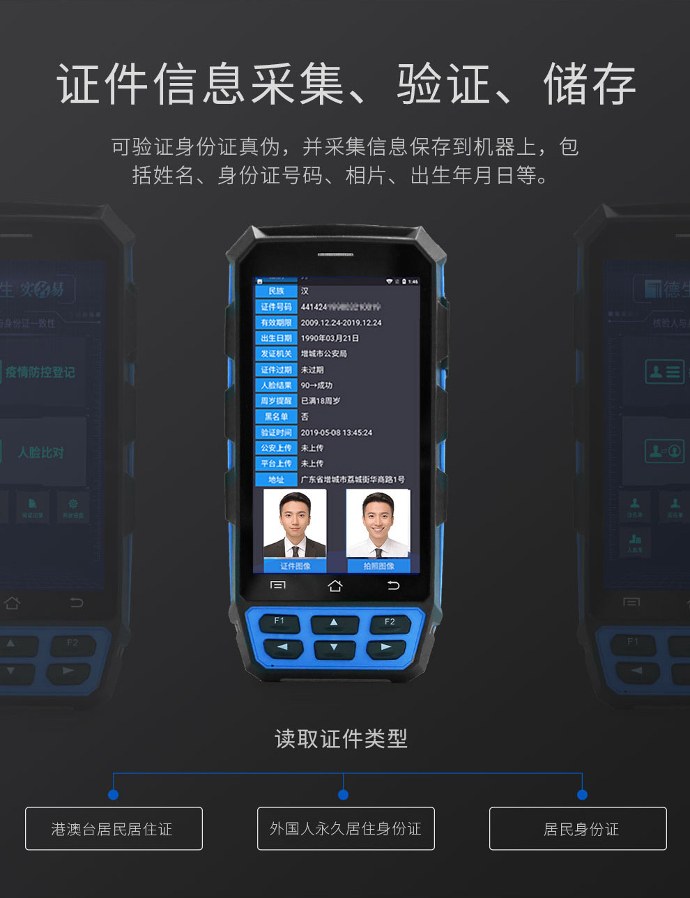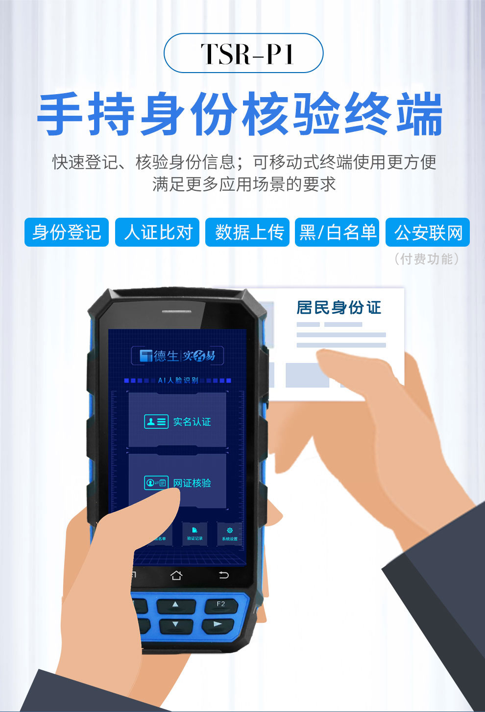 手持式人脸识别测温终端 TSR-P1人证比对、人脸识别、支持黑白名单管理,数据自动上传,对接公安网