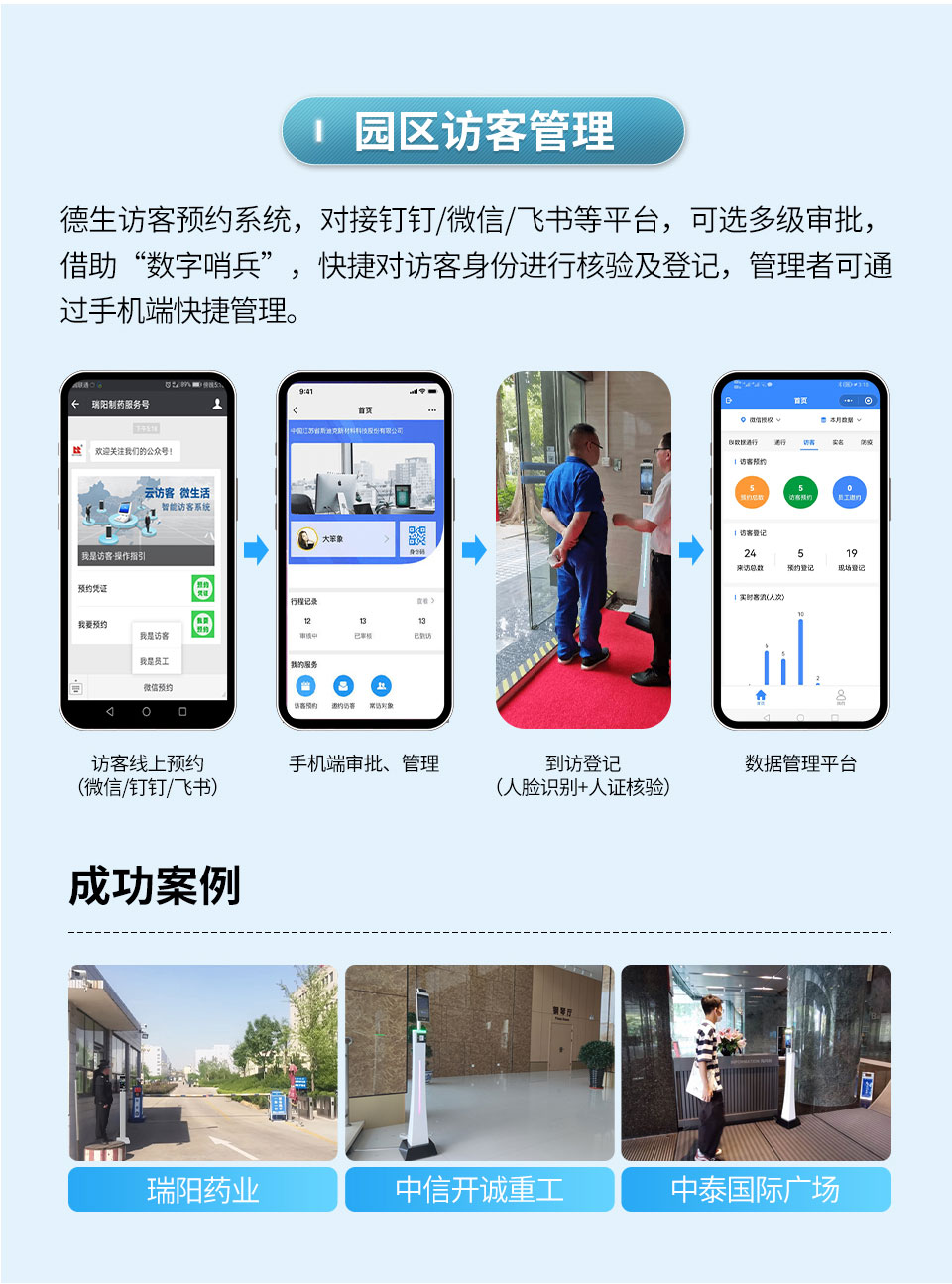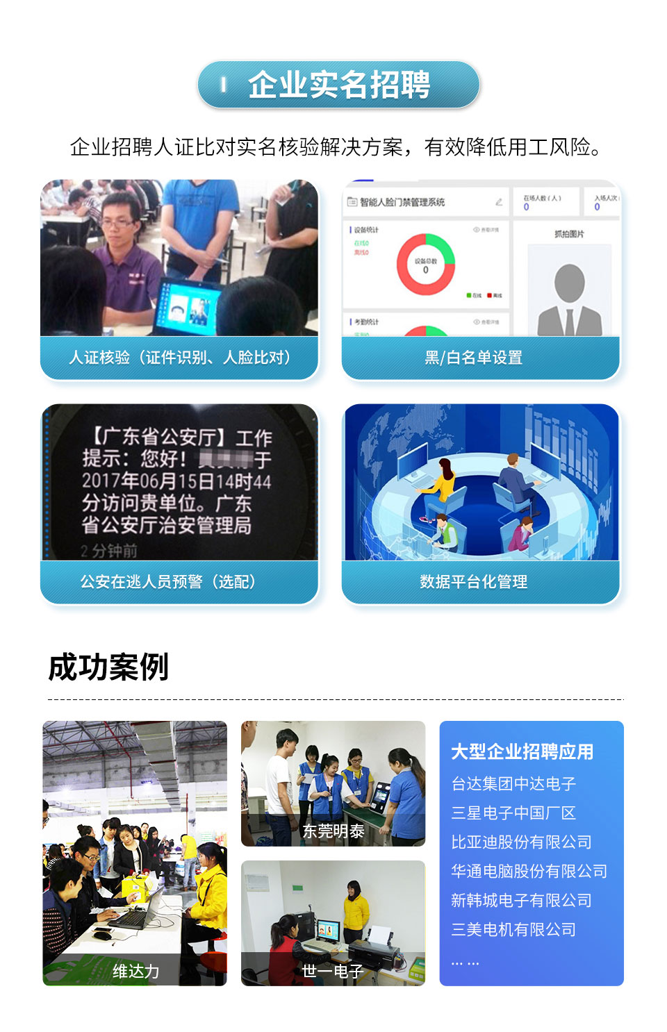 园区访客管理、企业实名招聘、会议门禁管理