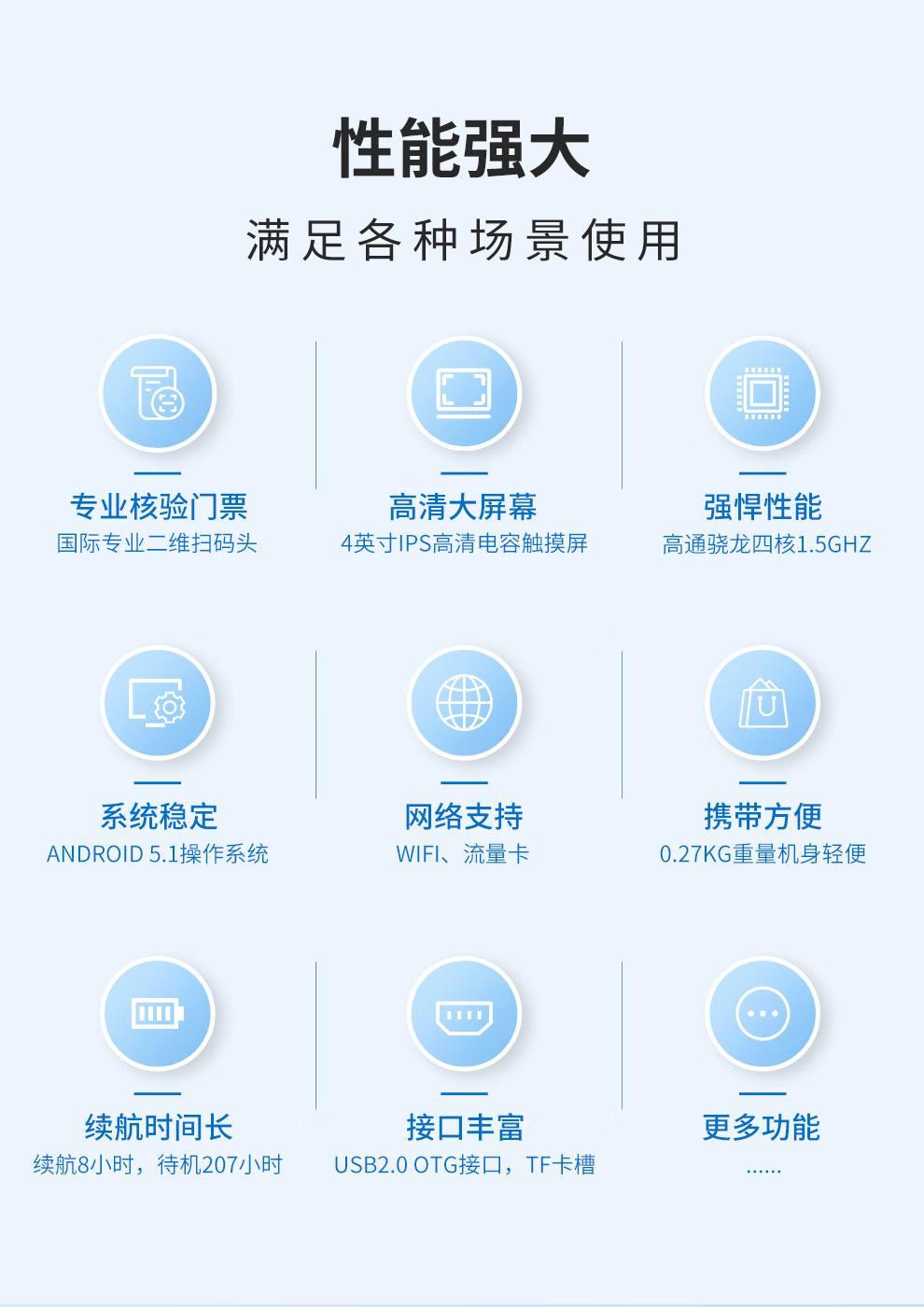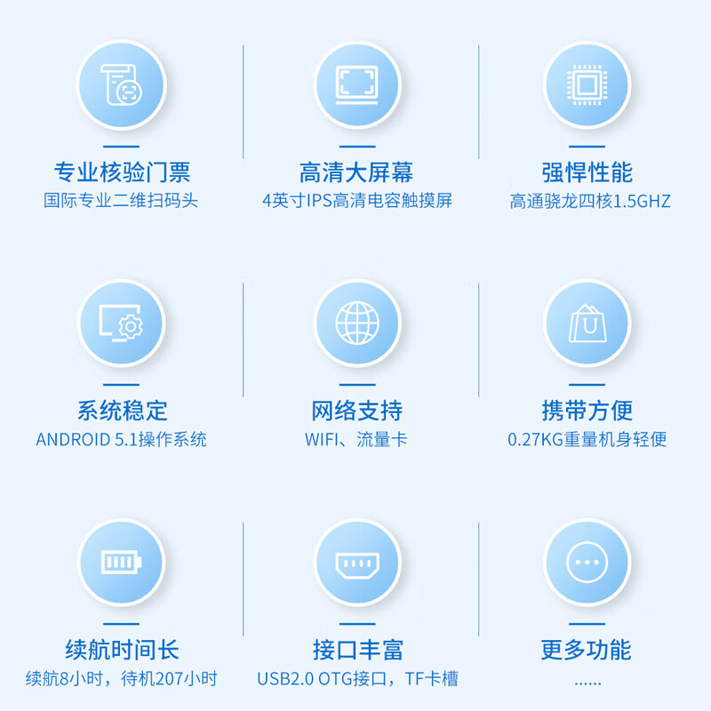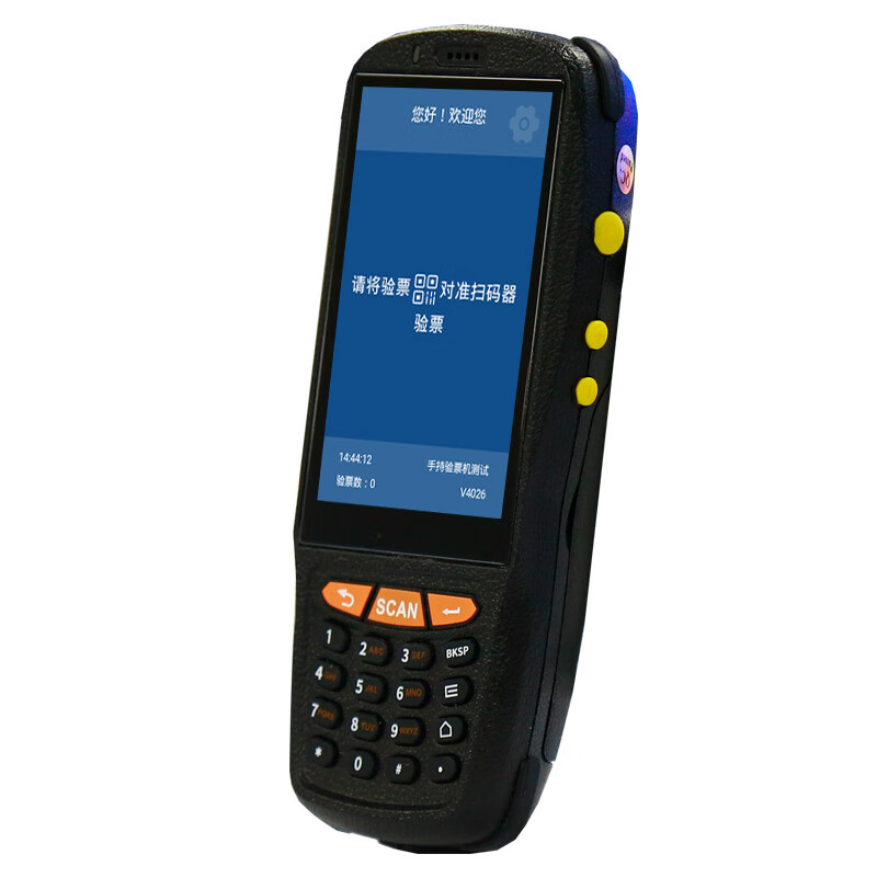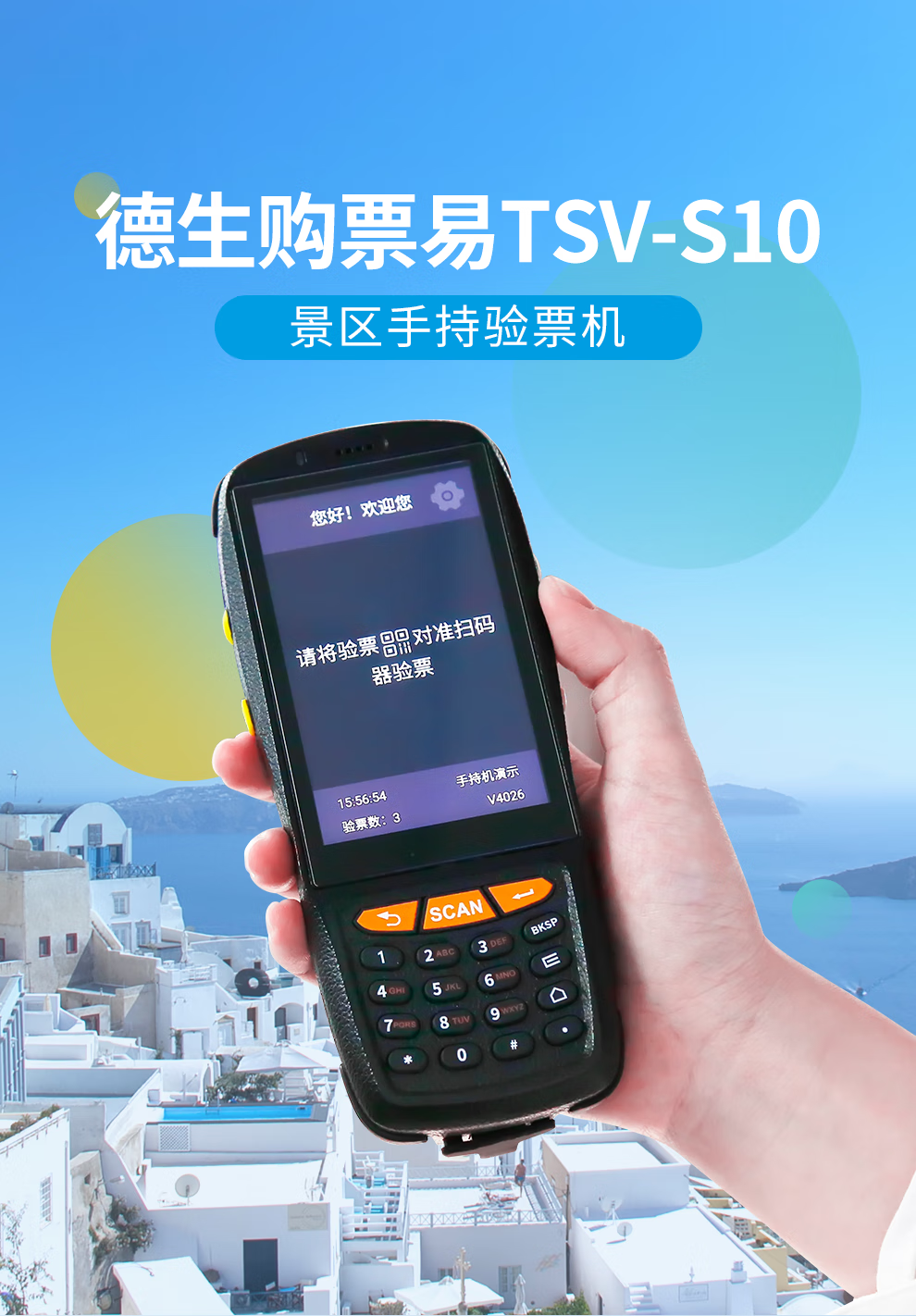 德生手持多功能无线检票机,是集二维码扫描、打印小票、门票核验于一体的智能检票终端